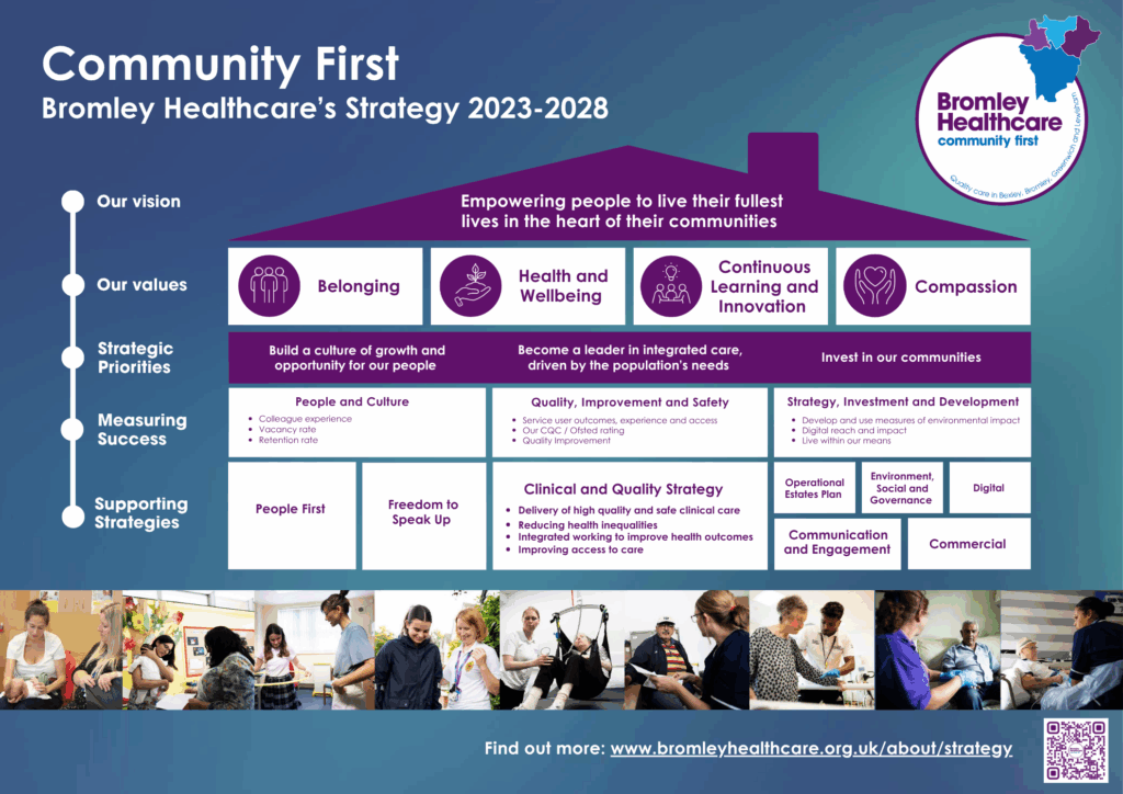 Our 5-year strategy – Community First 2028 – 2028 – renews our focus on what matters and draws our attention to working with colleagues, our partners and communities to bring people the best healthcare and experience. You can read out strategy here: